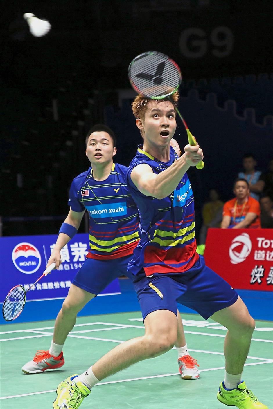 Malaysia's aaron chia (right) and soh wooi yik go for a shot in their men's doubles badminton group stage match against south korea's choi.